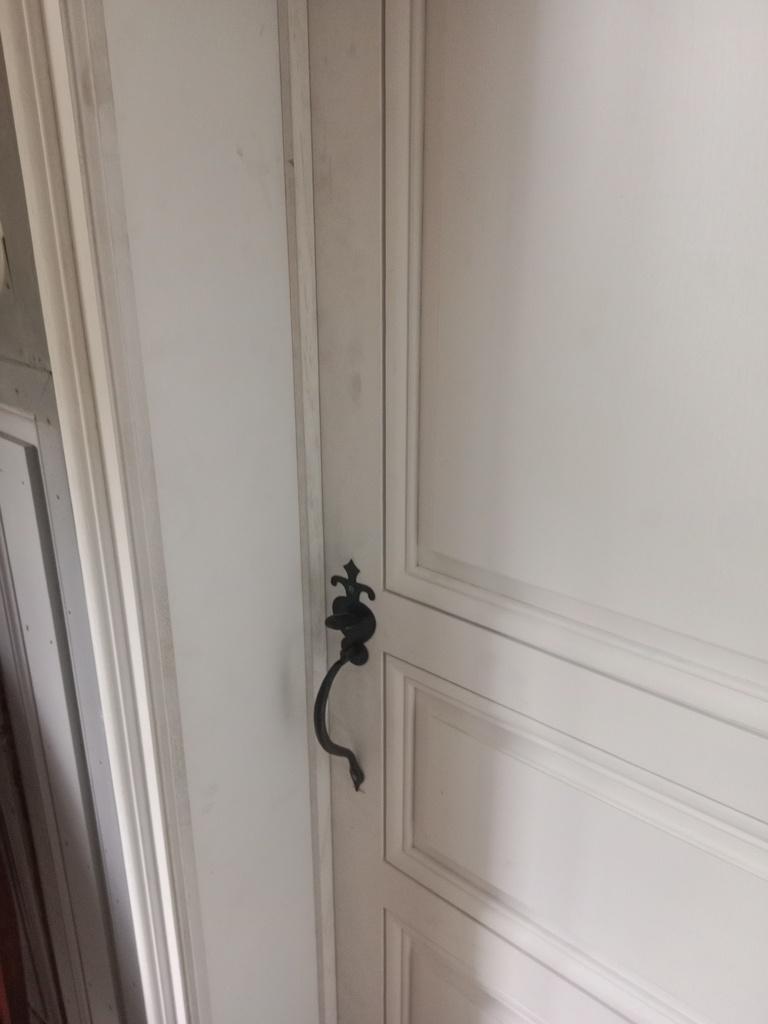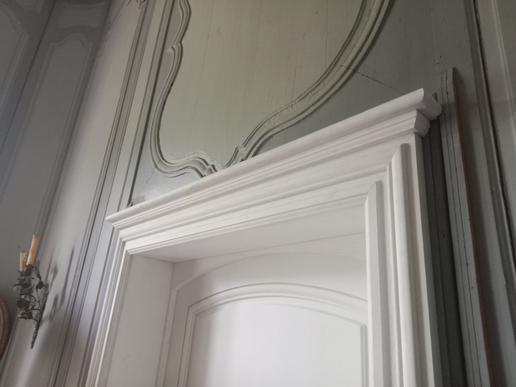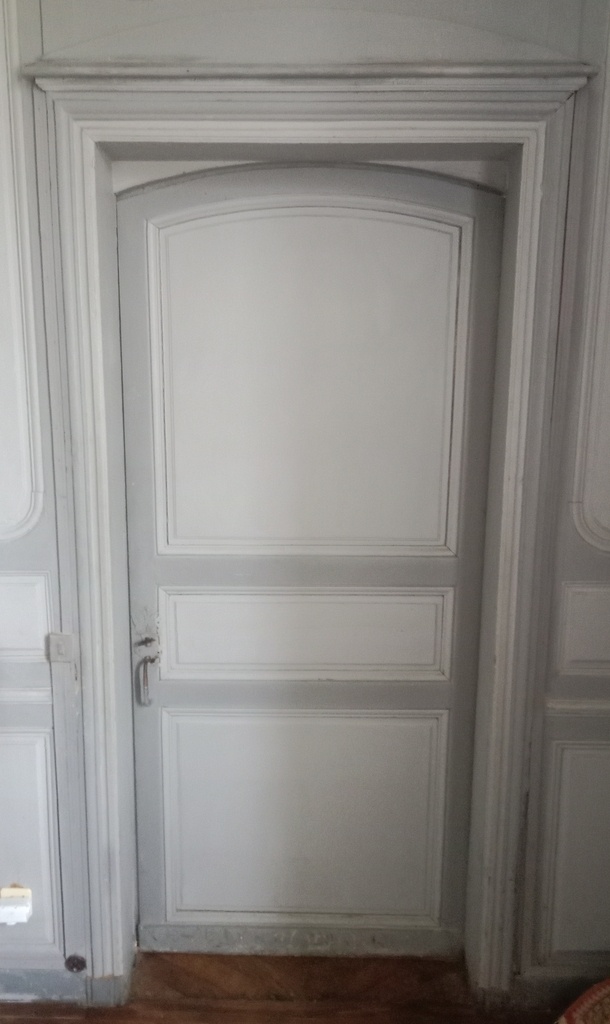 Copie de la porte ci dessous adaptée au passage avec chambranle,moulures et sabots. Locquet poussierQuelque part en Bretagne