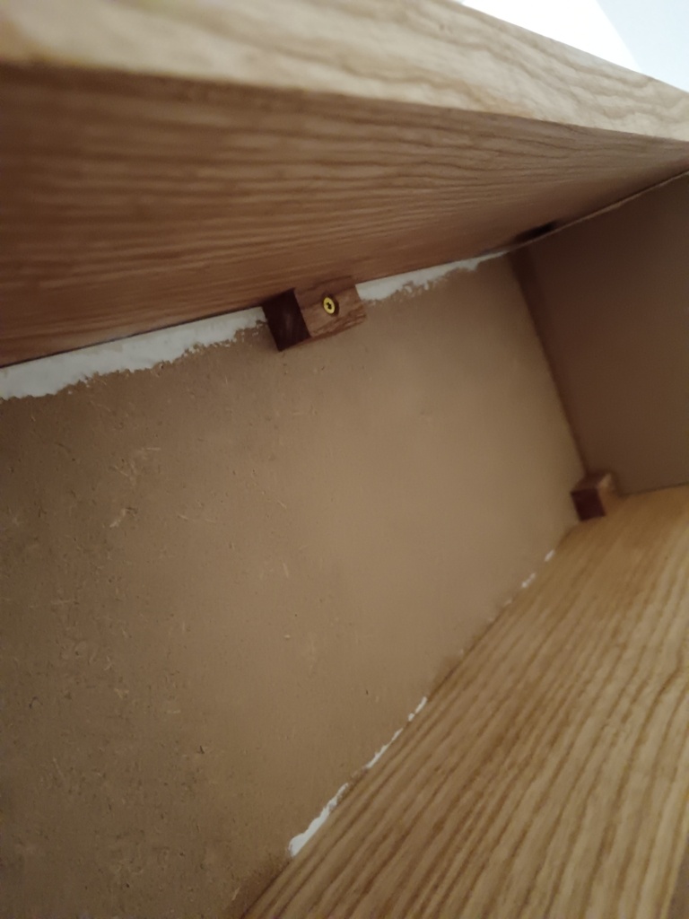 Entre la fabrication et la peinture, le MDF à du prendre l'humidité et donc gonflé, car depuis l'installation les rebouchages de vis sont légérement apparus...