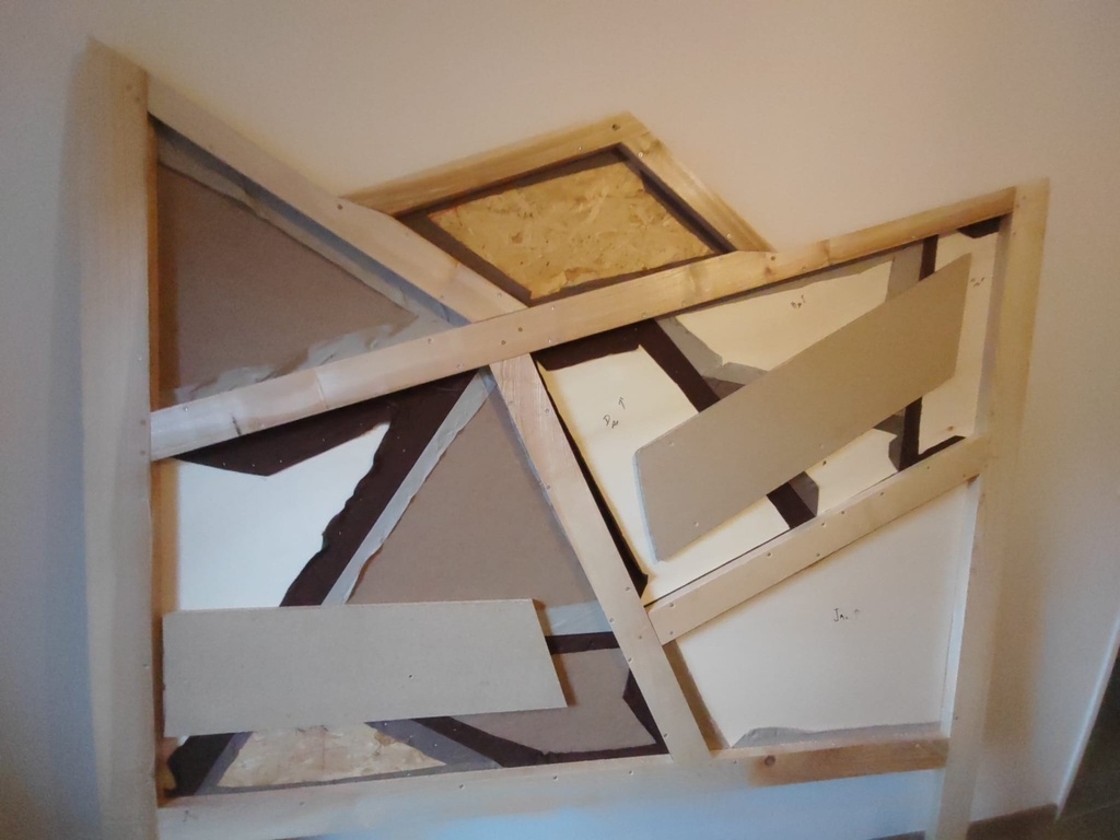 Pour le montage, tout est fait dans la chambre pour des questions de logistique. Les panneaux sont vissés par derrière, avec un renfort pour les morceaux qui ne reposent pas directement sur l'ossature.
