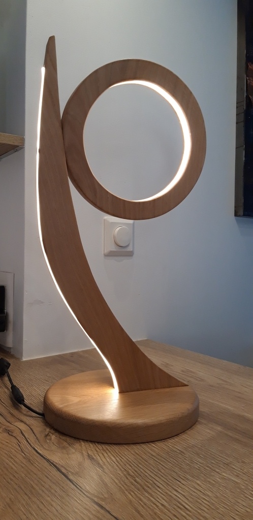 Bonjour Lampe de chevet en chêne, finition Osmo blanc et incolore avec ruban led COB. Hauteur 47 cm. Pas de difficulté particulière si ce n’est de dessiner des courbes harmonieuses...à mon sens !