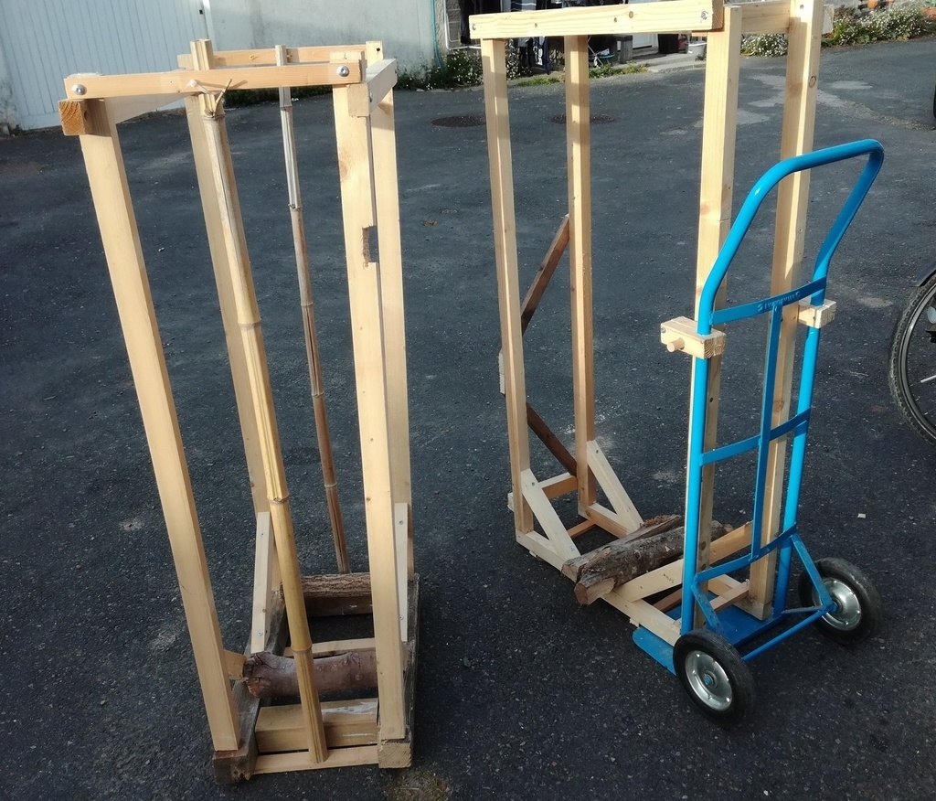 Tout en produisant le chariot à bûches l'automne dernier, je me suis dit qu'il en fallait plusieurs. L'idée est de casser/couper du bois quand les conditions sont favorables (forme physique du bucheron amateur peu costaud que je suis, météo), pour ne pas que le bois de chauffage soit une "corvée". On ne doit pas forcément faire le bois au moment précis où on en a besoin, et pour cela il faut du stock. Si le stock est mobile, on réduit plusieurs étapes de manutention bien connues de ceux qui chauffent au bois.