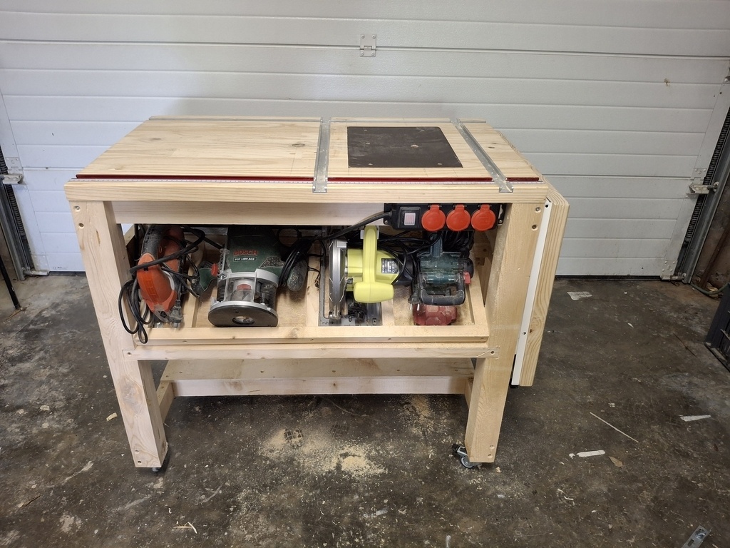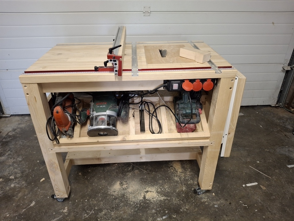 A défaut de pouvoir m'acheter un vrai combiné à bois, voici pour un investissement inférieur à 200€ ma table à faire des copeaux.