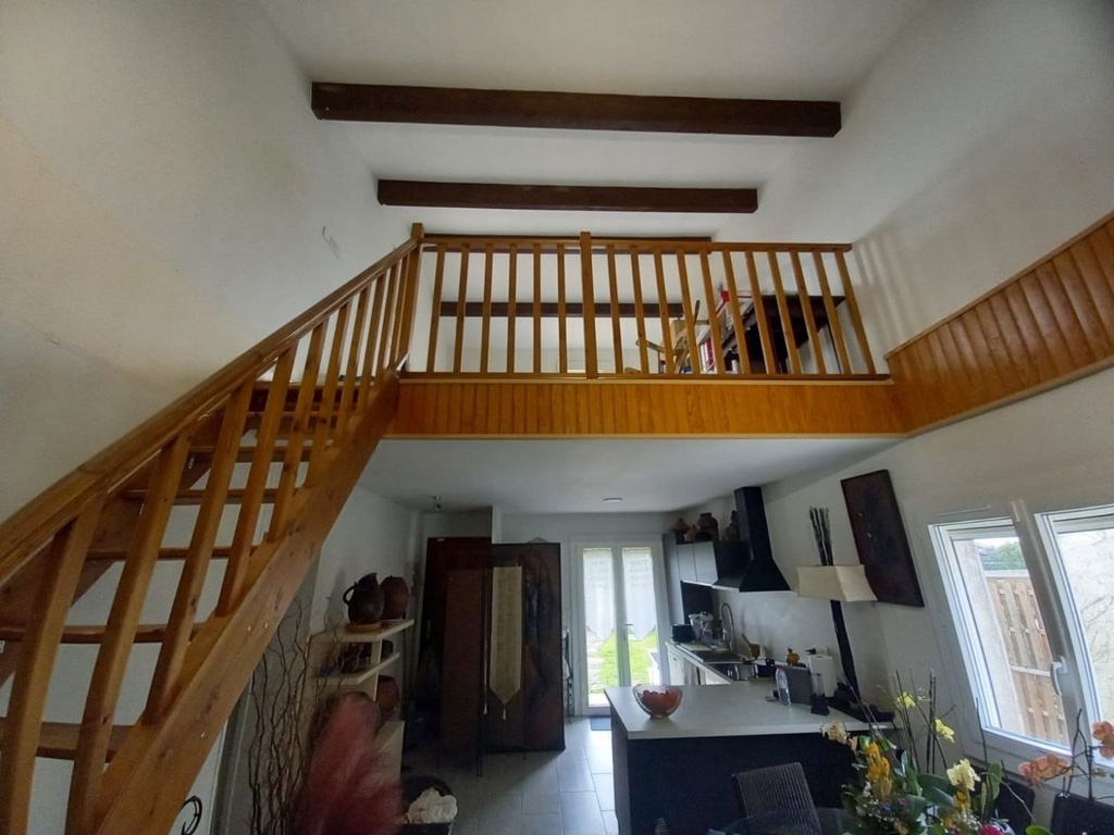 Ici un escalier droit avec garde-corps en Pin Sylvestre.