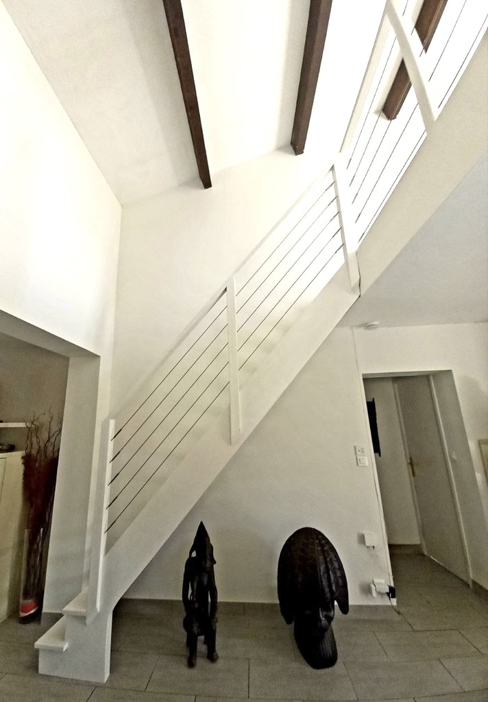 Il y a un bien bel escalier, de belles sculptures, mais faut changer le canapé...