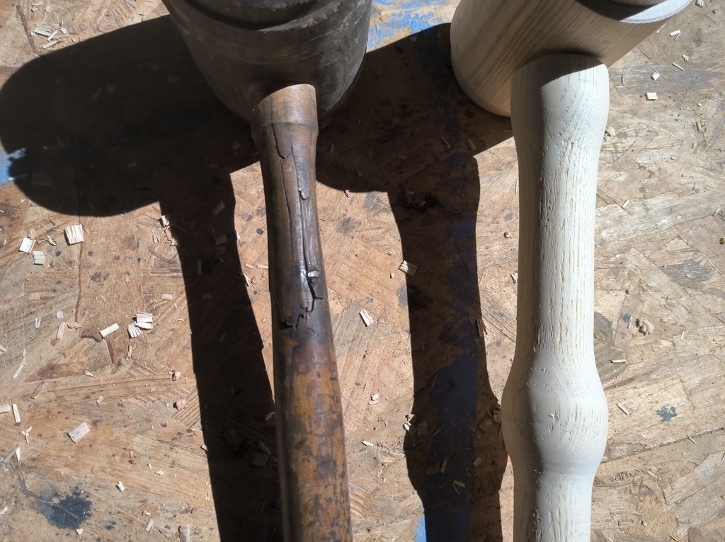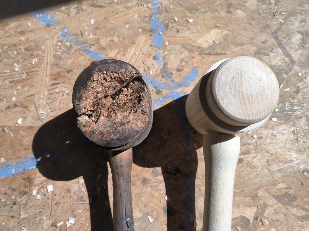 Un copain ferronnier a eu un petit souci avec son maillet bois.