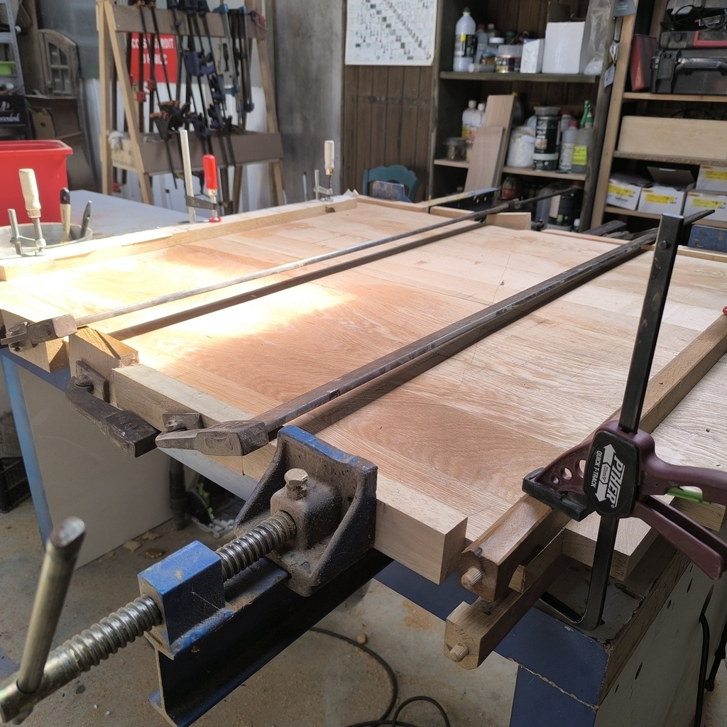 La finition est assurée par rubio en smoke 5%. J'aurai dû utiliser la white 5% qui dénature le moins le chene.