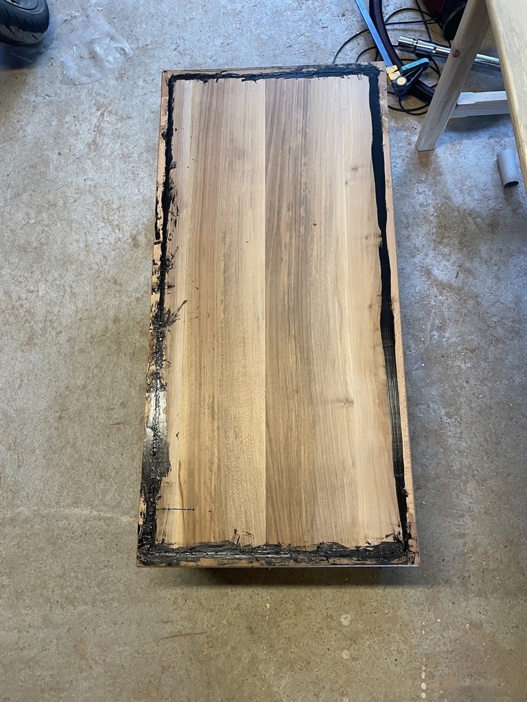 Et enfin, pour combler le jour entre le plateau et le piètement, j'ai utilisé du joint pont de bateau, m'étant inspiré des créations de ponpon, Pierrot, RPs, et Boris Beaulant. Merci à eux !
