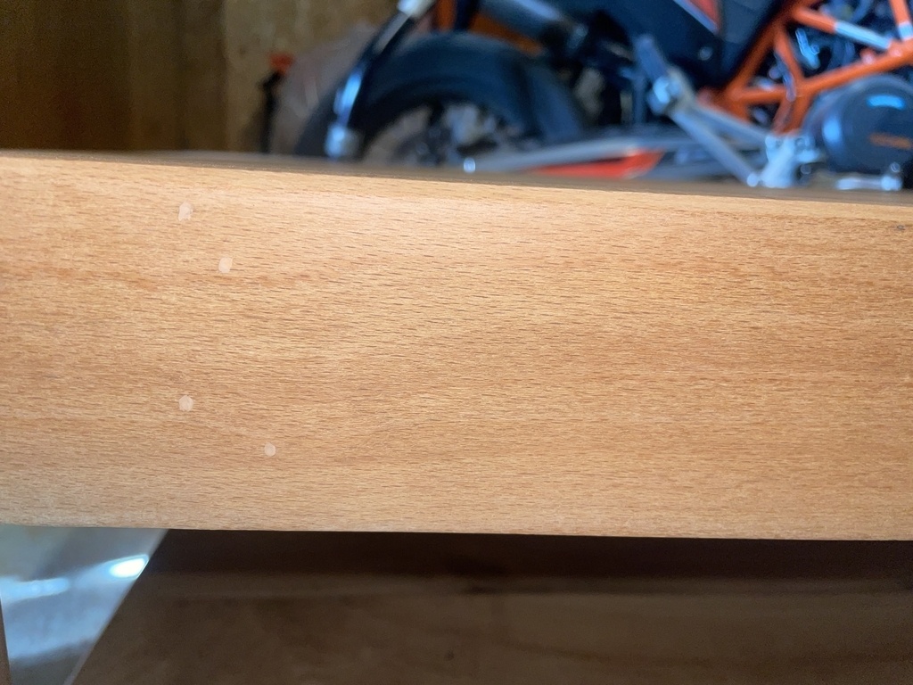 Je précise que le bois des traverses et des pieds a une teinte rosée, la sciure aussi d'ailleurs. Le hêtre a cette couleur aussi ?