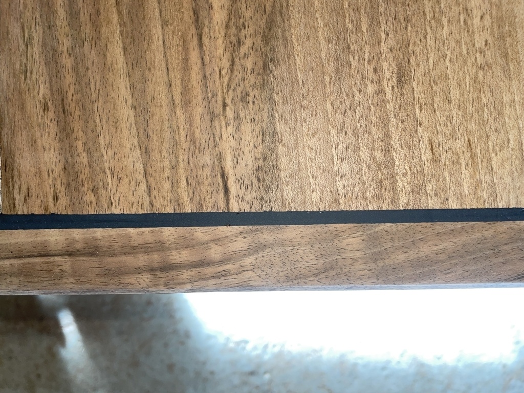 Et enfin, pour combler le jour entre le plateau et le piètement, j'ai utilisé du joint pont de bateau, m'étant inspiré des créations de ponpon, Pierrot, RPs, et Boris Beaulant. Merci à eux !
