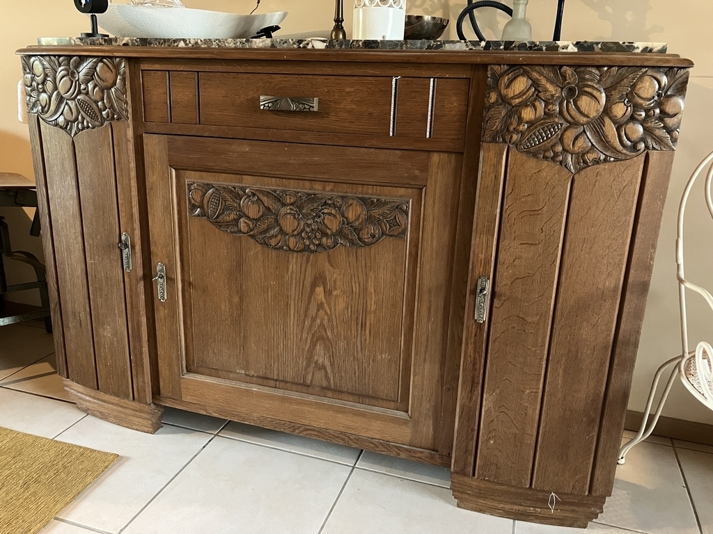 Elle a été réalisée pour un client qui meuble sa nouvelle maison dans le style art déco "régional", c'est à dire des meubles chinés datant des années 1920 - 1925.