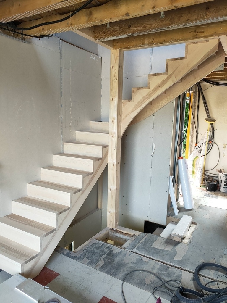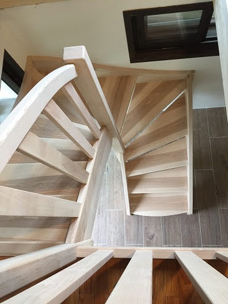 La fabrication d'un escalier est toujours quelque chose de très plaisant pour moi : prendre le temps de la réflexion avec le client, l'implantation et l'encombrement, l'essence de bois, le garde-corps... Ensuite , le tracé et la fabrication : des heures à l'atelier :)