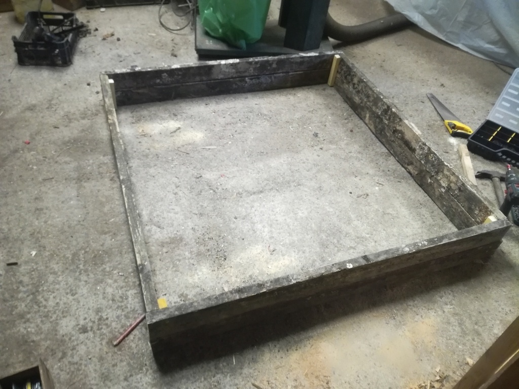 Un carré potager express réalisé avec des anciens morceaux de la pergola de ma voisine et des chutes de tasseau qui restaient. découpes à la scie égoïne puis assemblage à l'aide de vis et installation dans le potager. Simple et rapide. réalisé en 1h.