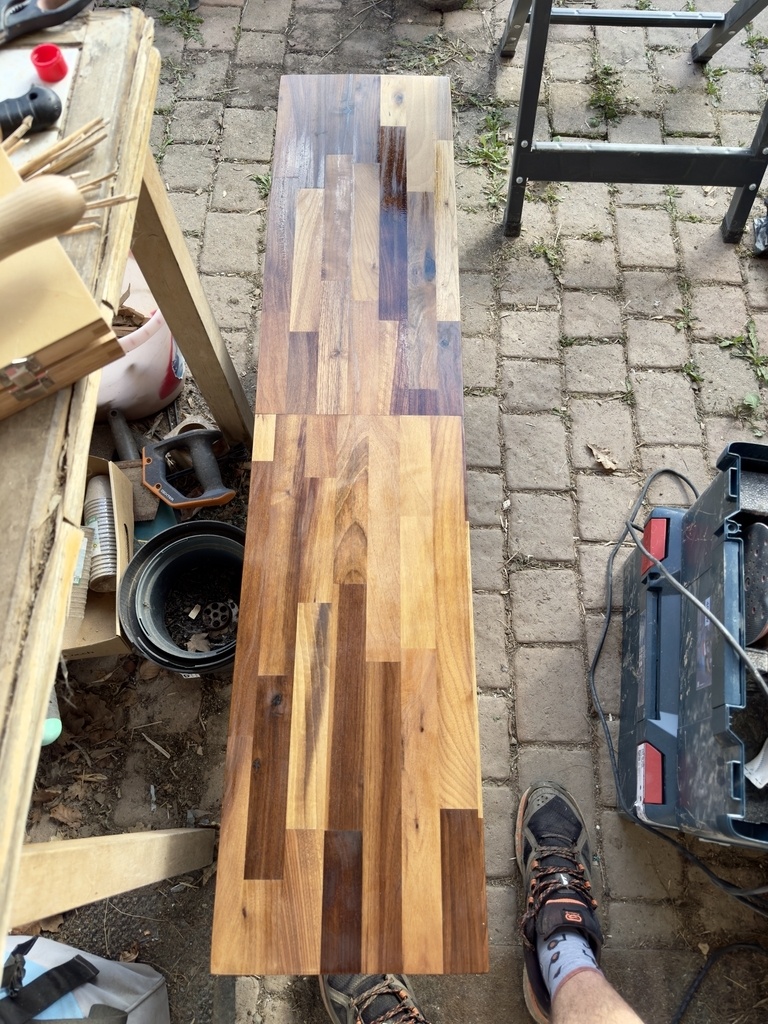 La planche principale est un lamellé-collé de récup dans un magasin de bricolage.
