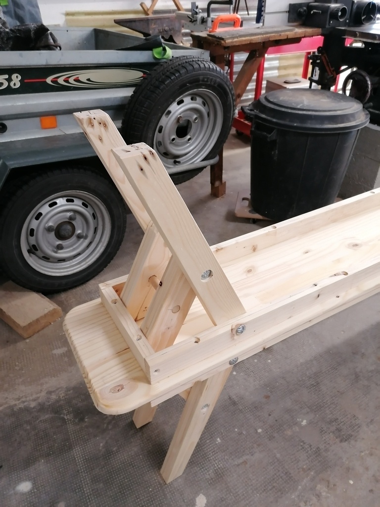 Une série de 4 "bancs de brasserie" à pieds repliables fabriqués pour les 40 ans d'une de nos nièces.
