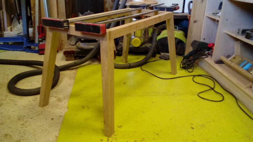 boris je n'ai pas fait de gros plans des details mais les pieds et traverses sont assemblées par tenons et mortaises avec angles...j'ai du finir les mortaises au ciseau apres la bedane carrée pour donner l'angle.