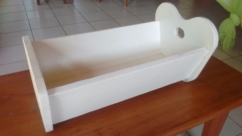 Un petit lit de poupée pour l'anniversaire de ma fille. Tout bête, en pin peint :-), parce que en bois de Guyane il lui aurait fallu attendre cinq années de plus avant de pouvoir le porter !