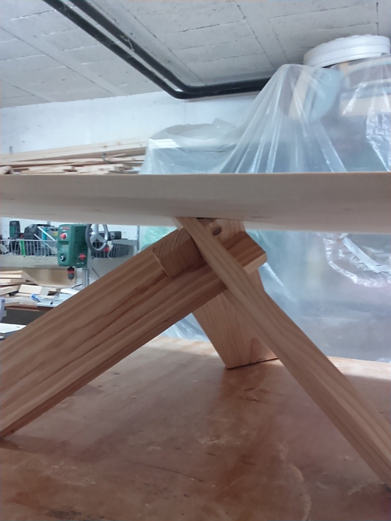 Pour le porte à faux de la table, je dirai que si le plateau reste si grand il y a un risque de basculement en s'appuyant dessus.