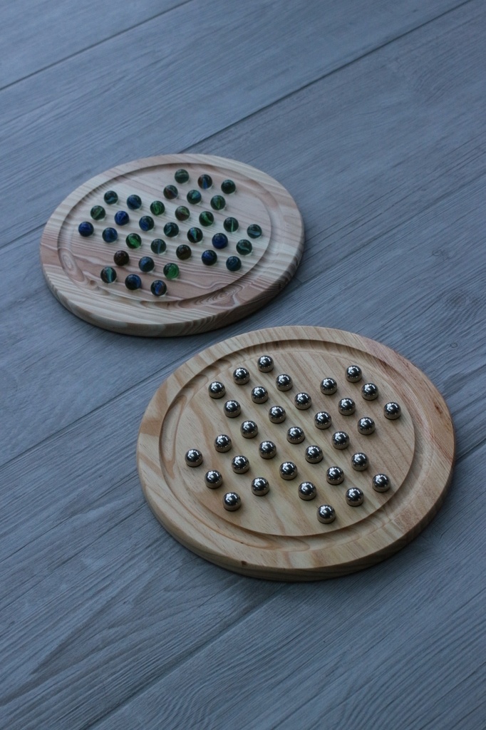 Solitaires en pin. Billes acier et billes de jeux. Petits jeux sympas qui ne se démodent pas !!!