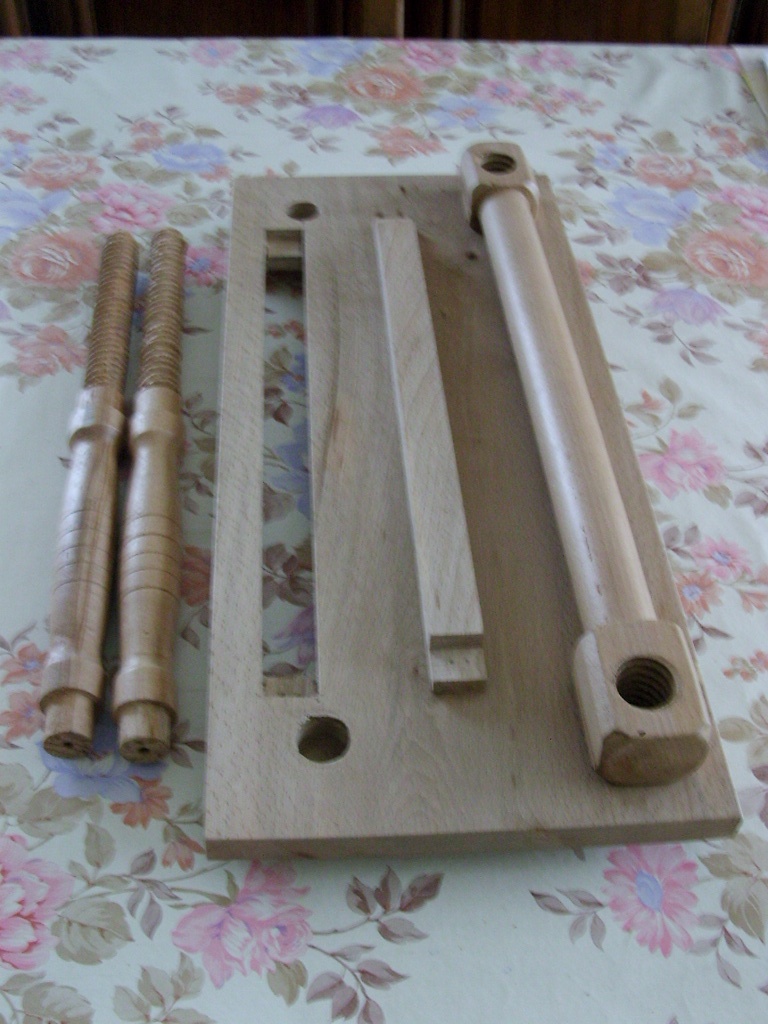 Suivant des cours de reliure ,je me suis lancé dans la fabrication d'un cousoir,cet objet comprenant du tournage, du filetage avec une tarière et une filière achetées dans un vide grenier.