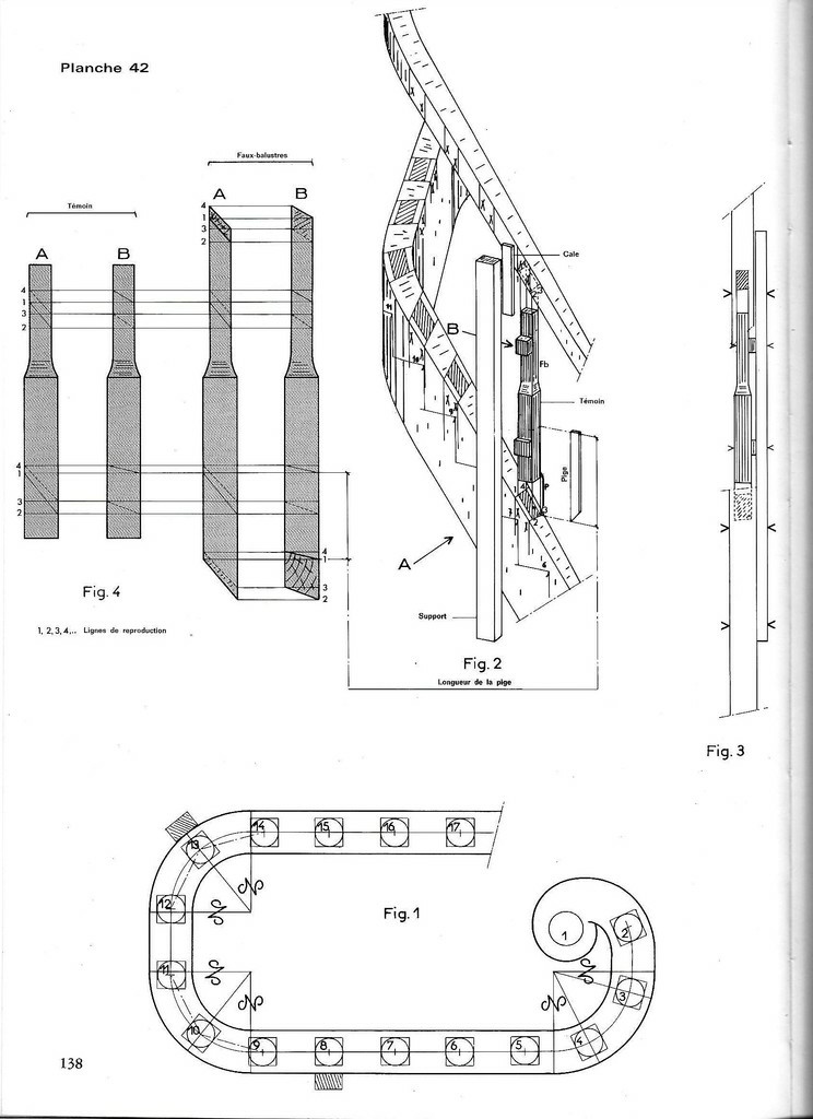 Le traçage se fait en 3 étapes :1- traçage du témoin. 2- le faux balustre. 3- réalisation du définitif (suivant l'explication du livre de Jean Martin)