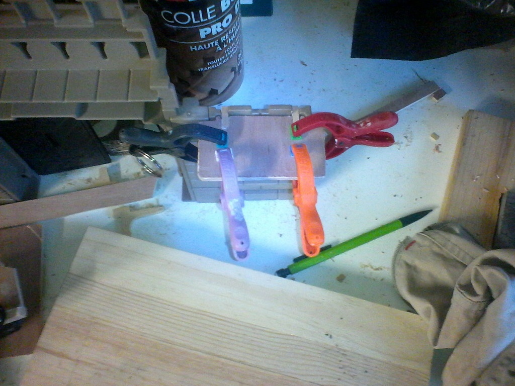 Un gabarit pour chaque type de pièce, du scotch double face et une fraise à copier pour reproduire les formes plus vite.