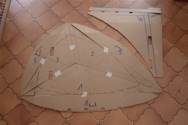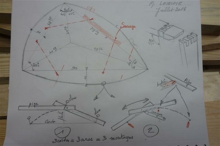 les cotes des cotés des 3 triangles du plateau ont etè calculées par trigo de triangles quelquonques j'aurais pû faire l'epure et rembarrer sur bois (comme apris en 1959 :pas de calculette mais des tables trigo ) ...