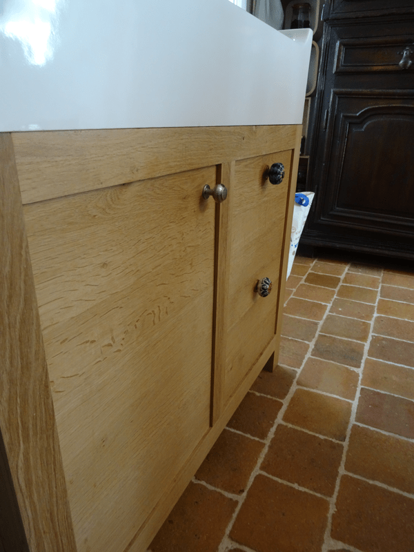 Parmi mes quelques réalisations: ce meuble de cuisine pour y poser un évier timbre d'office.
