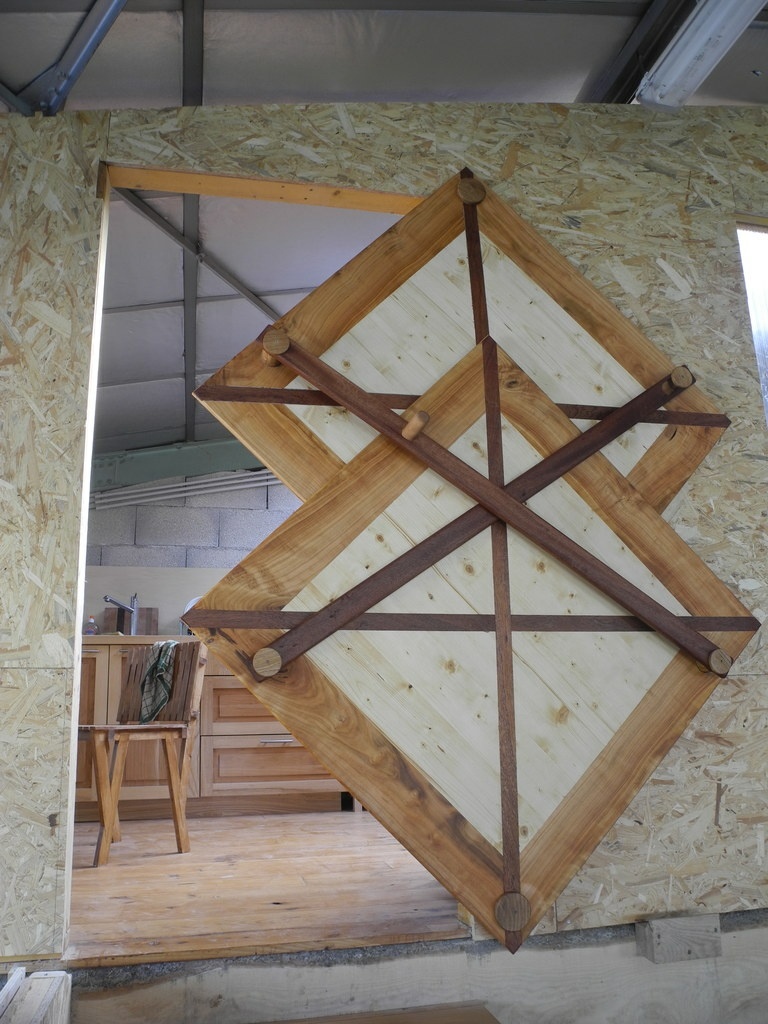 Gwain13 tu peux le voir un peu sur la photo prise depuis l'intérieur. On a tourné des axes d'une longueur égale à l'épaisseur de la cloison bois.