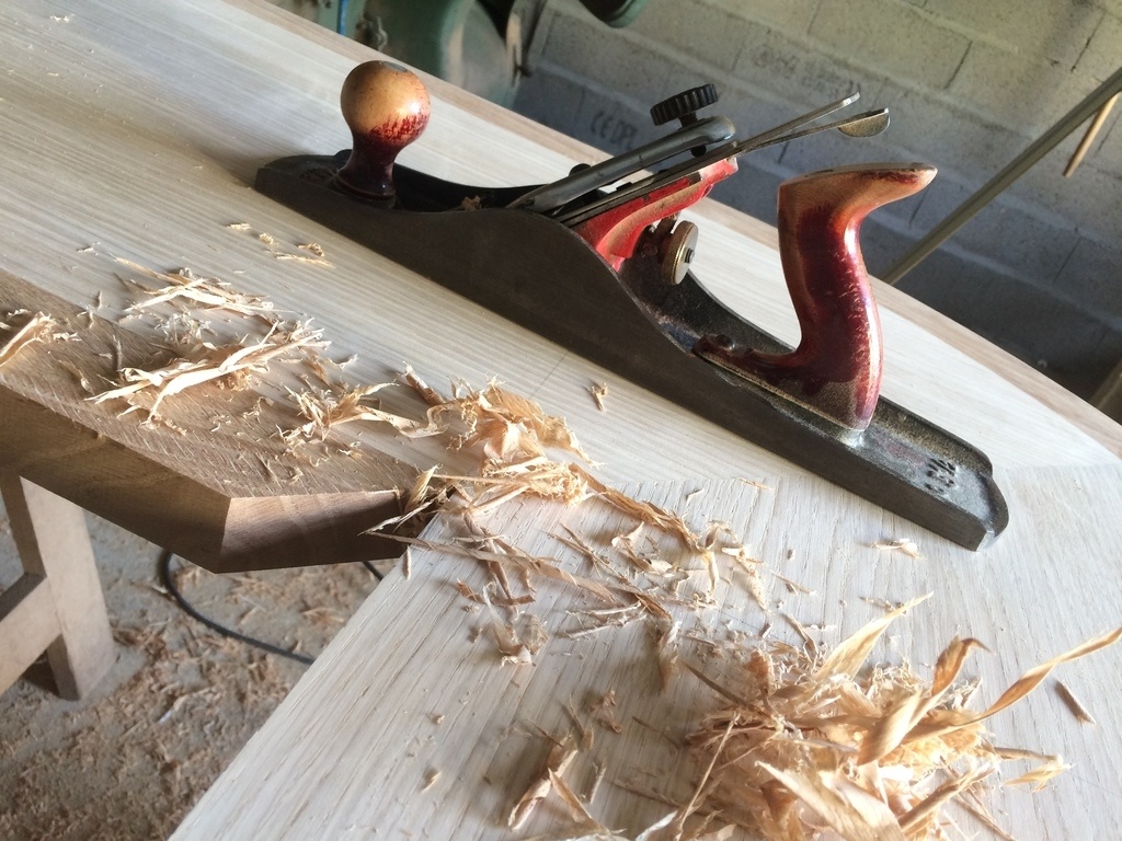 Le client avait pas spécialement demandé à avoir de la courbe mais sur chaque projet j'essaye de me rajouter un petit quelque chose que j'ai encore jamais fait. Du coup je me suis vraiment éclaté à faire ces alaises en massif et dans la masse et à venir les affleurer au rabot, sachant que le panneau a un plaquage d'une épaisseur de 1mm, ça laisse pas beaucoup le choix de se planter, je suis très content du résultat.