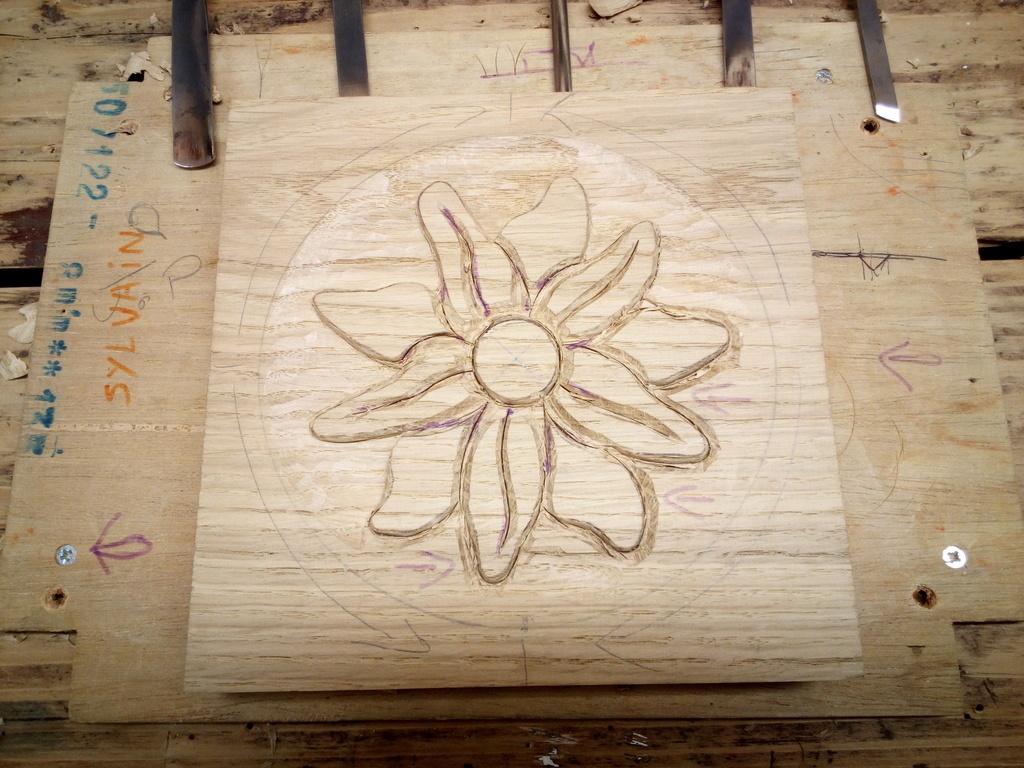 Mon cadeau de Noël, un stage de sculpture avec Mme Delphine Gohard à Poisy (74) allée des castors , très très bonne expérience, une séance de yoga avec un burin. Ça doit ressembler à une edelweiss normalement .