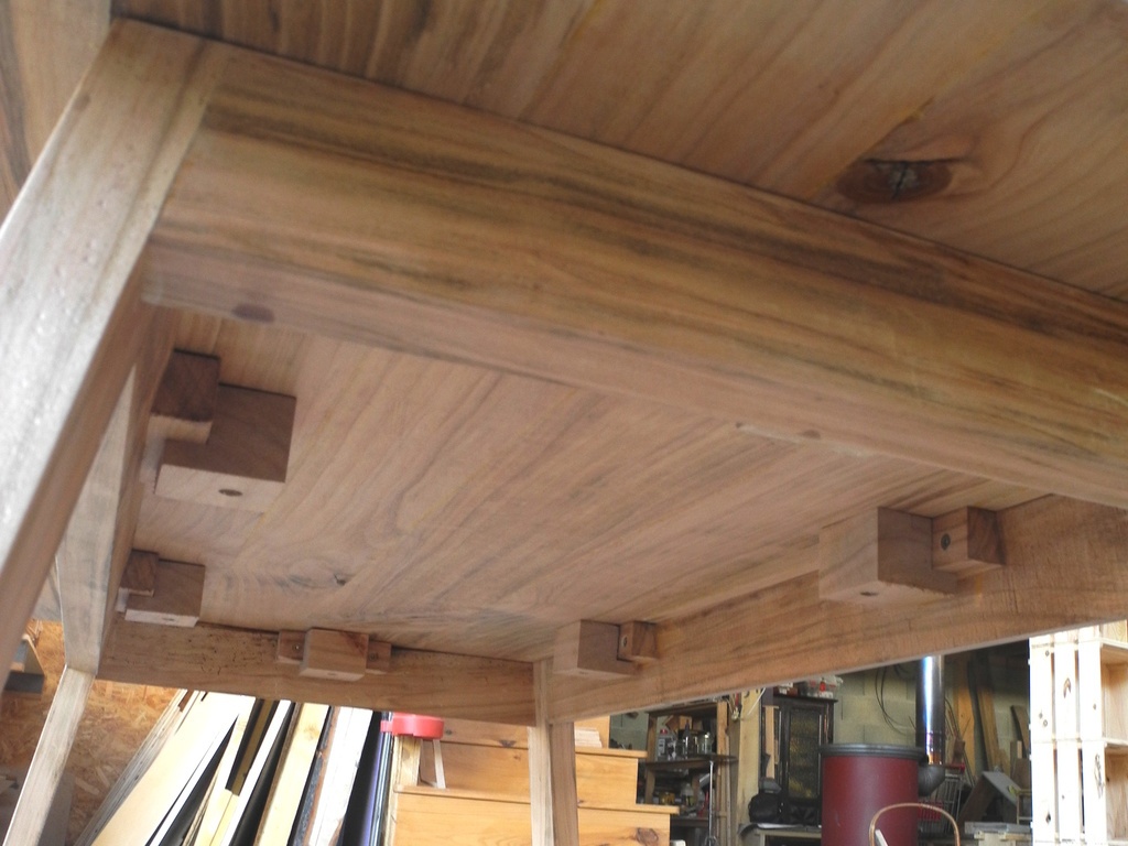 Le piétement à un angle de 10° dans les deux plans. L'assemblage a été fait avec des dominos.
