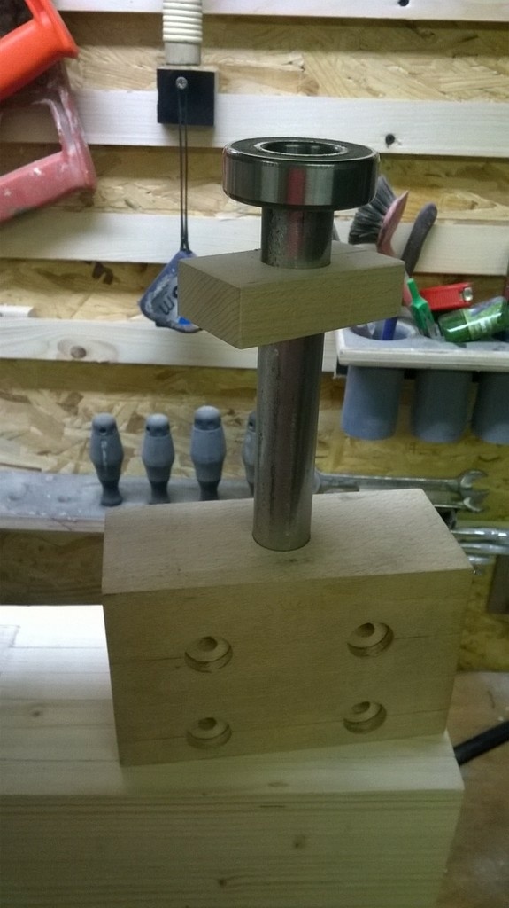 Les volants sont en MDF 36mm épaisseur (2 panneaux collés) et ensuite enduit d'un mélange eau/colle à bois pour les durcir. Je les ais troués pour réduire l'inertie comme sur le site de Marius Hornberger, un autre site pas mal non plus.