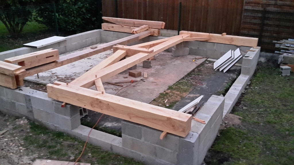 Joli travail, ça a l'air robuste. On aurait presque envie de s’arrêter à l'étape charpente et toit, ça ferait un bel abris d'été.