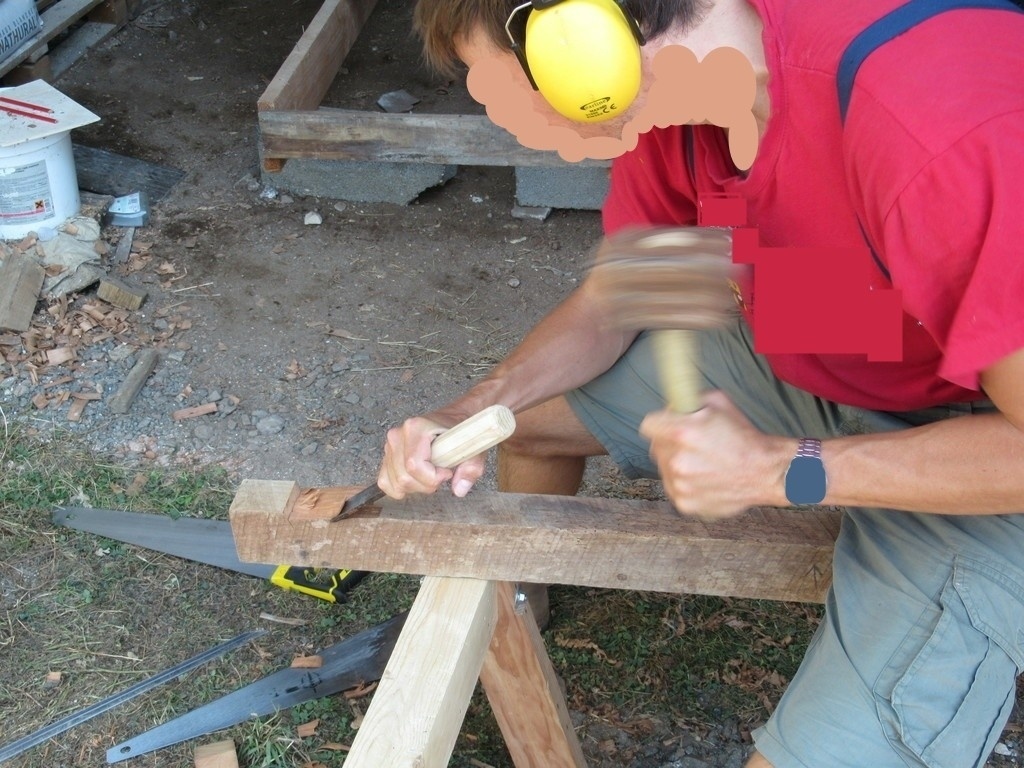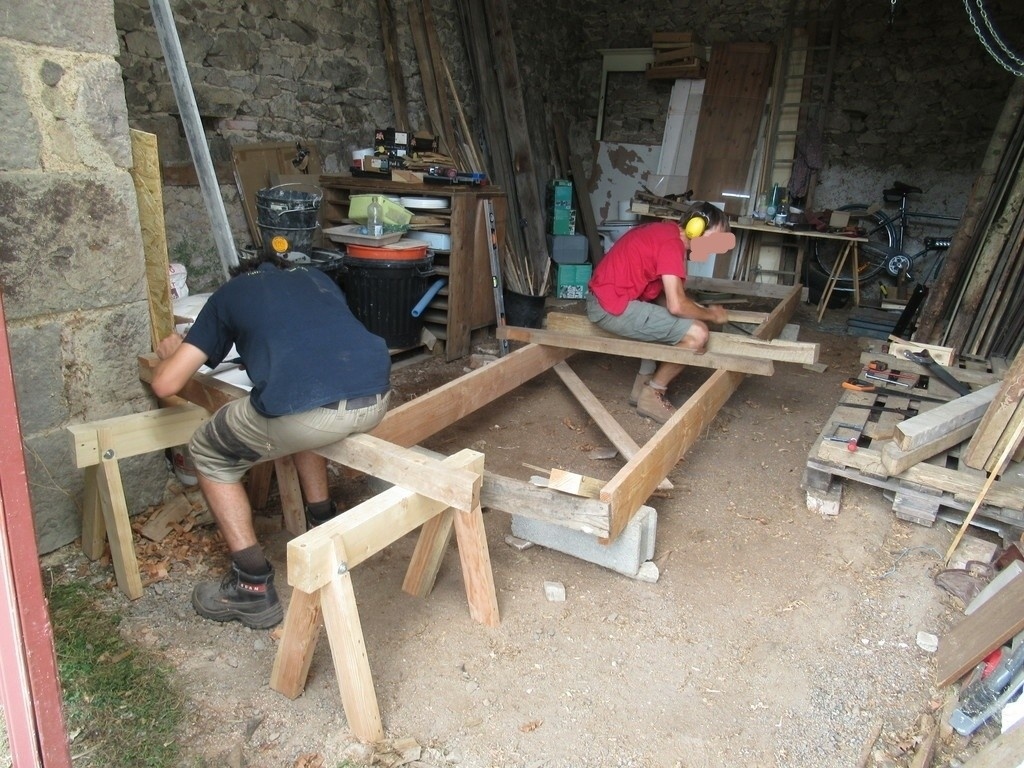 Tout à été fait à la main, sur du bois de récupération. Dans le lot il y avait du merisier et du chêne. C'était l'occasion de me servir de mes tréteaux.