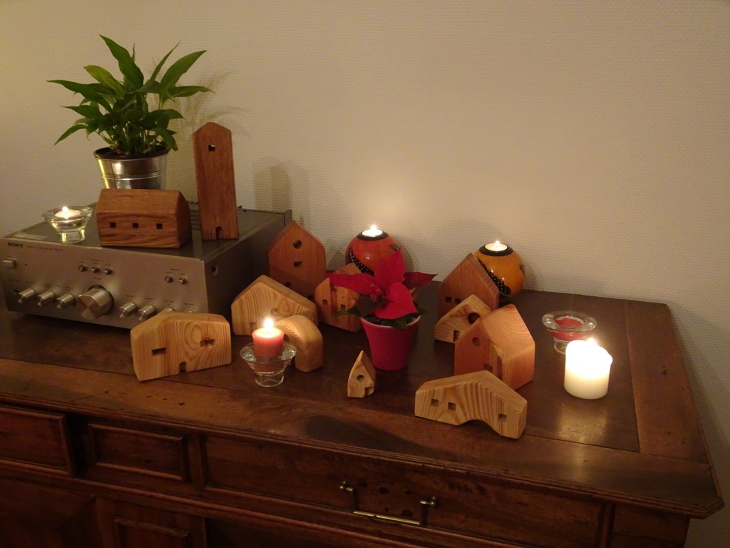 Rien de spécial, j'ai fait les fenêtres carrées à la mortaiseuse, parce que j'avais celle du tonton à porté de vélo. Ma version est aussi moins laïque puisque j'ai une église, ça doit être mon coté alsacien.