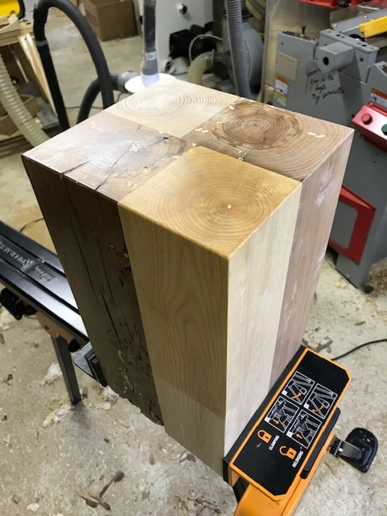 Pour faire un tabouret simple et massif, constitué de 4 morceaux de sections carrées de 44 cm, collés.