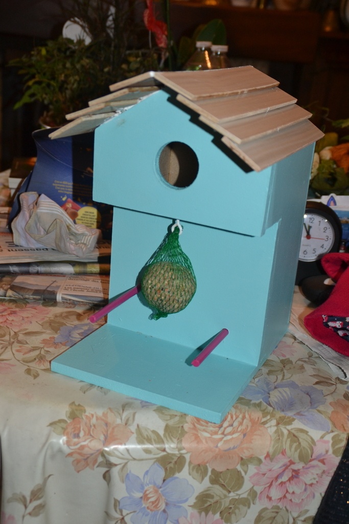 Nichoir/mangeoire à oiseau de 24x 18x 28 cm qui a fait le bonheur d'une dame de 97 ans à Noel.