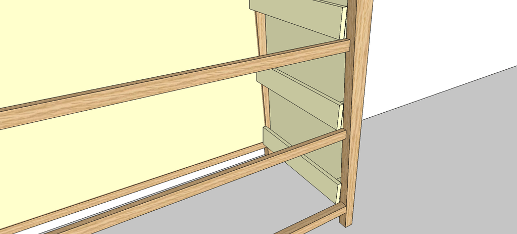 Comment t'en es-tu sorti pour fixer les coulisses des tiroirs ? En escalier, ou second montant à l'intérieur ?