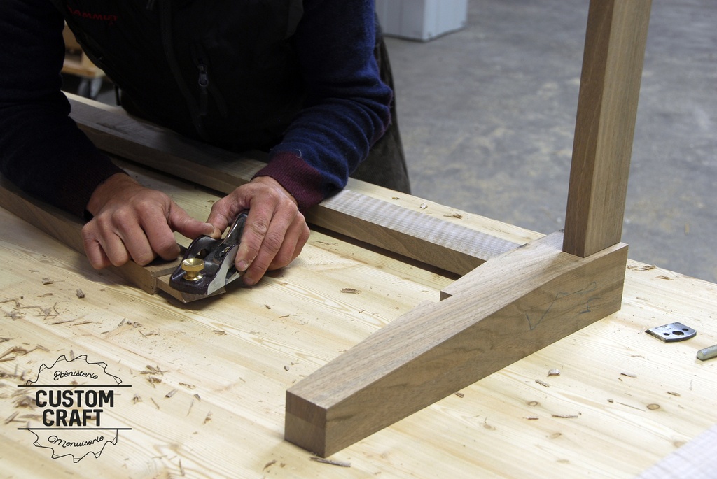 Fabrication d'un table en noyer avec plateau intermédiaire. assemblage par tenons mortaise et le plateau intermédiaire par des entailles
