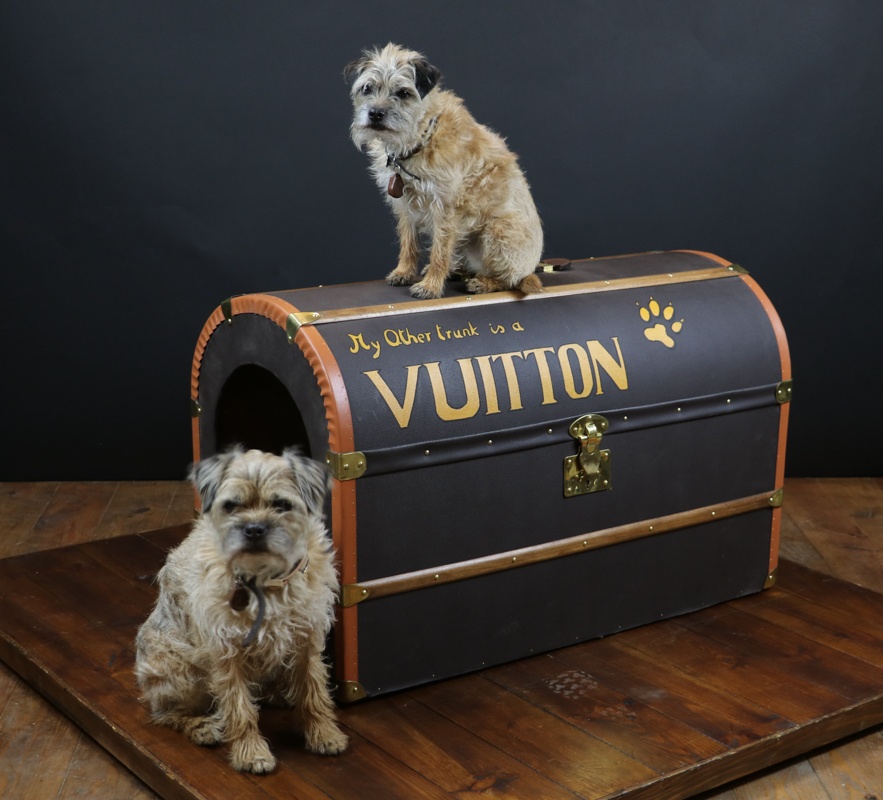 L'inscription : "My others trunsk is a Vuitton" signifie pour ceux qui ne parlent pas anglais " Mon autre malle est une Vuitton" signer par une patte