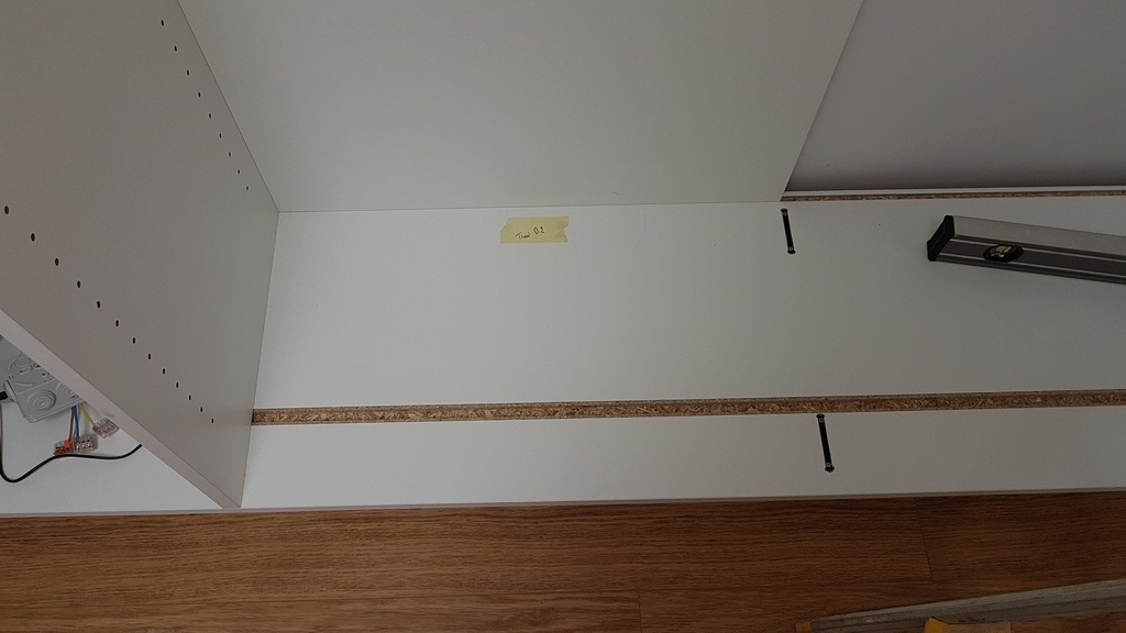 socle en hydro de 19 mm avec vérins réglables pose en façade des plinthes de finitions