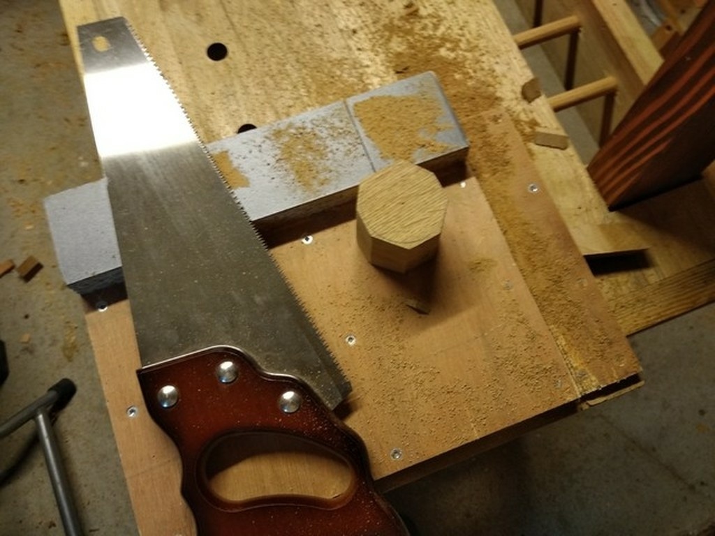 Du coup, un peu pressé (encore!), j'ai fait avec ce que j'avais sous la main : une chute de chêne collé pour un tournage en bois de travers et creusage en bois de fil.