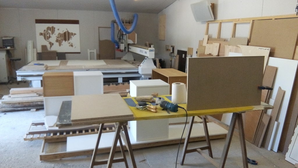 Devant rester raisonnable en budget j'ai opté pour utiliser majoritairement du panneau agglo, problème les formats ne vont que jusqu'à 280cm là où il me fallait meubler 400cm.