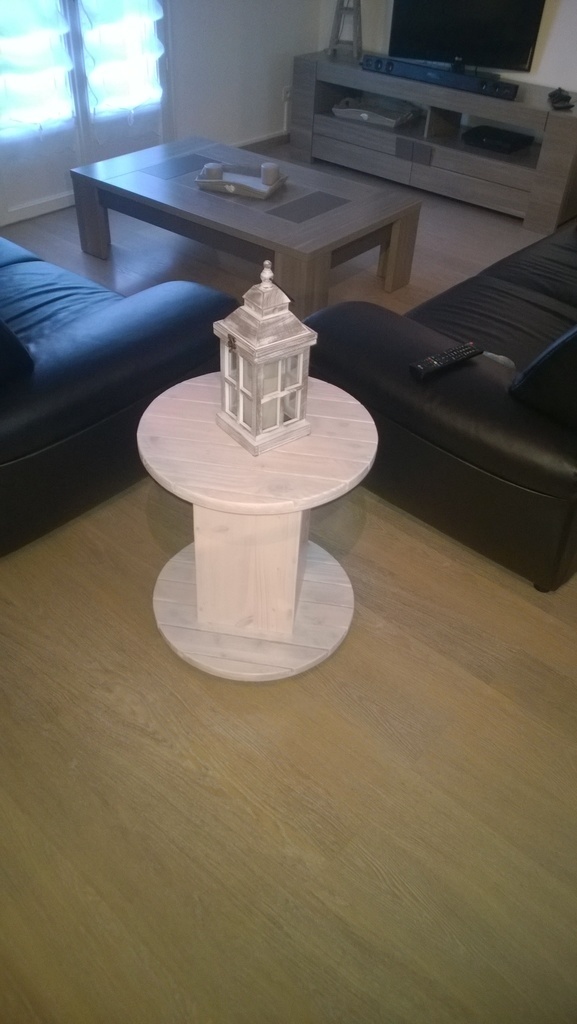 Touret de récupération habillé avec une palette, finition chêne blanchi