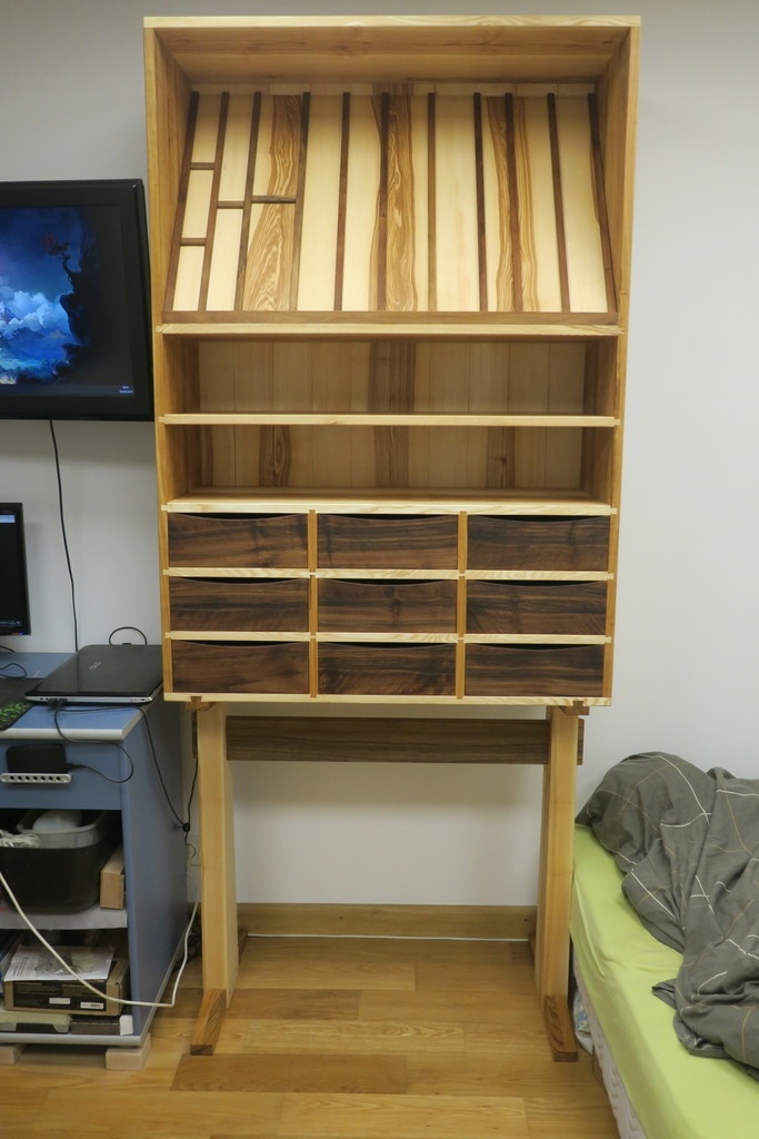 Enfin, le meuble rempli de ce qui a servi à le construire.