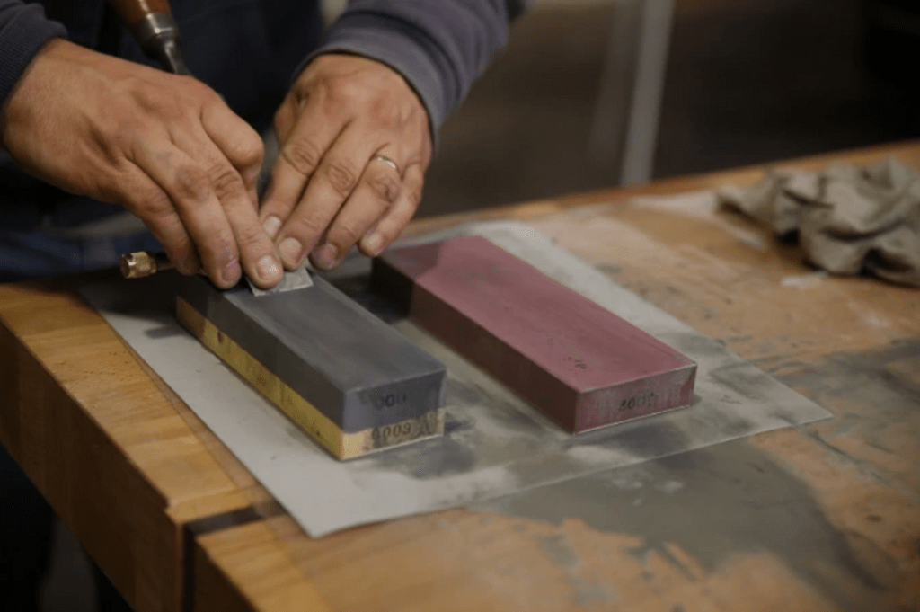 Puis nous abordons les abrasifs qui nous servent à rétablir le tranchant pour finir sur les différentes techniques d’affûtage leurs avantages et inconvénients.