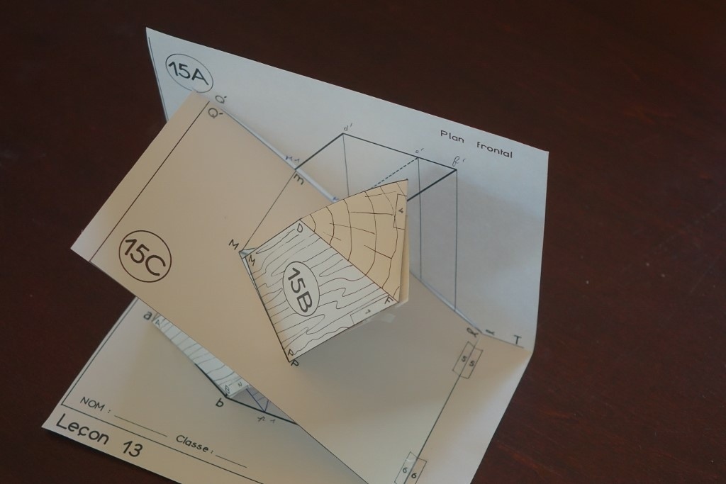 - Ces travaux pratiques de géométrie descriptive permettent la construction de maquettes individuelles avec lesquelles les élèves pourront concrétiser les tracés théoriques nécessaires pour la recherche des "vraies grandeurs" en géométrie descriptive.