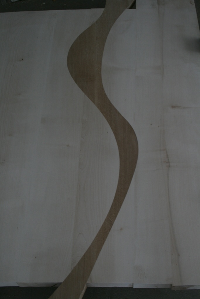 Cette technique fonctionne très bien mais pour le coup, la courbe de base n'étant pas faite chez moi,j'ai préférer la réalisé sur un cp de 10 car je maitrisais mieux la perpendicularité du chant que sur mon plan en érable de 38mm.
