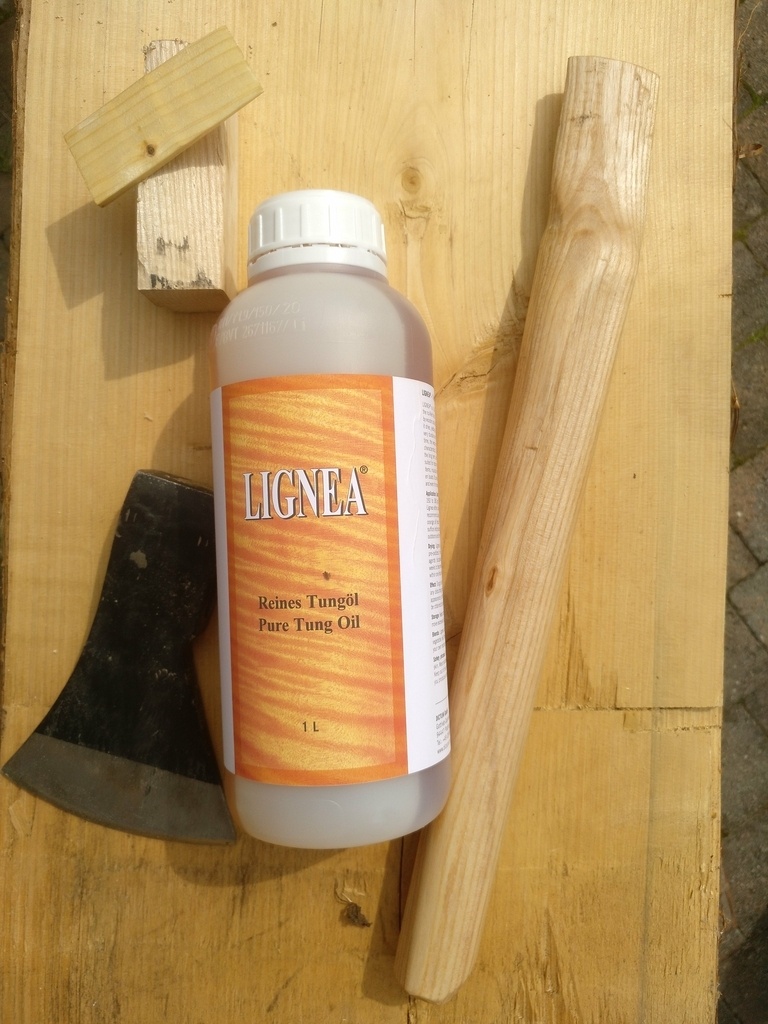 J'ai décidé de mettre de l'huile de tung pour protéger le manche. J'ai en tête que cette huile conviendra bien pour cette utilisation (mais je n'ai pas vérifié...