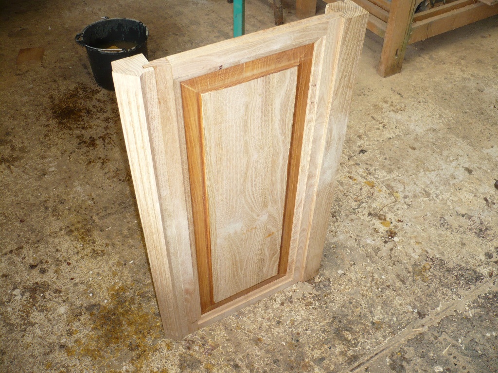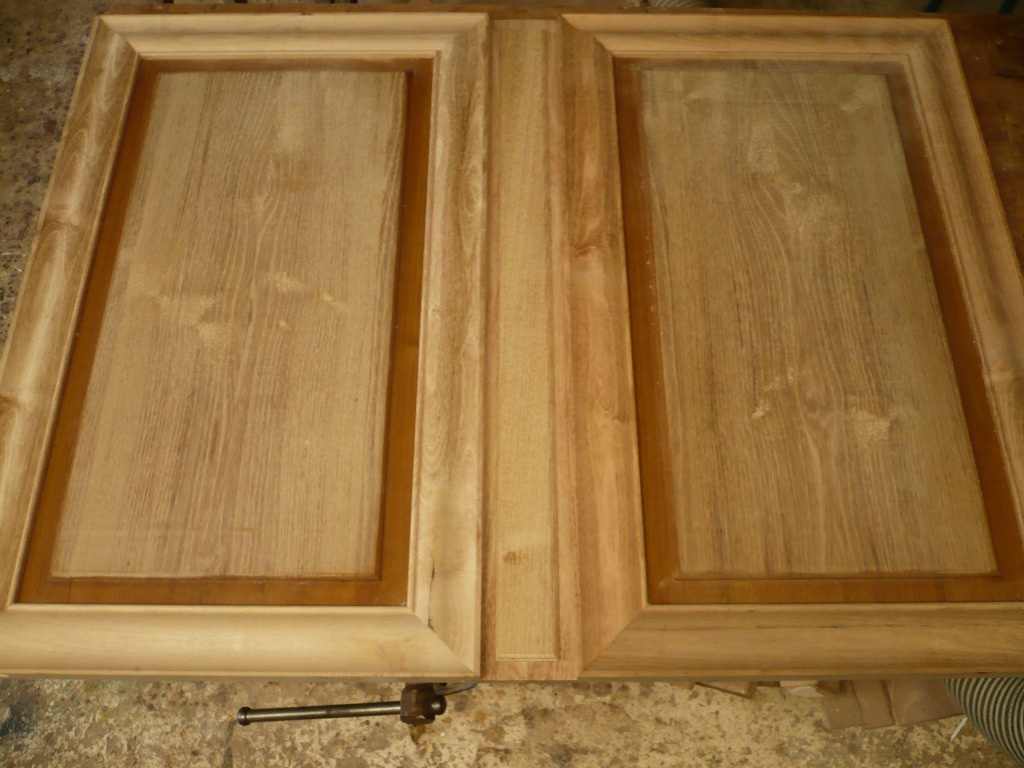 Les panneaux ont été débité dans un plateau de 60 d'épaisseur, refendu en deux ce qui permet de jouer avec le ramage. Ils font 22 fini. Une plate bande sur chaque face.